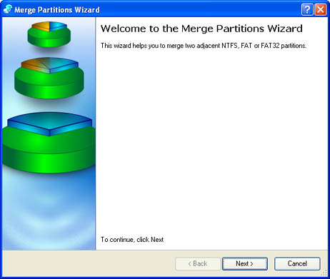 - On the Common Tasks bar: click the Merge Partitions item of the Wizards menu.