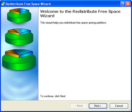 - On the Common Tasks bar: click the Redistribute Free Space item of the Wizards menu.