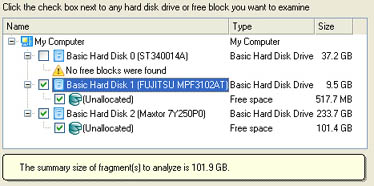 - Free blocks to scan for lost partitions. Choose a free block from a tree-like list of available disks and their partitions.
