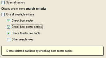 in case of valid restoration of the record in the Partition Table). The program provides the ability to find and recover these partitions. This function minimizes the hazard of occasional partitions deletion and is usually known as undelete.