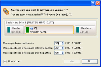 3. Define parameters of the operation with the Move/Resize Partition dialog.