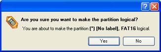 - Select in the Main menu: Partition > Modify > Make Partition Logical/Primary.
