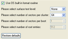 - The amount of root entries. This parameter is available exclusively for FAT16 file system. Set the maximum amount of files/directories to be placed in the Root Directory on the FAT16 partition.