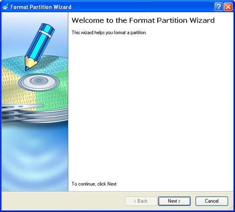 - On the Common Tasks bar: click the Format Partition item of the Wizards menu.