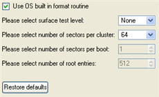 - Whether the surface test will be performed. Mark the option to make the program perform the surface test on the formatted partition. In this case, the program will find bad and unstable sectors and mark them unusable in the file system metadata.