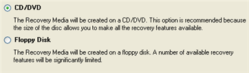 q Type of the recovery media the user is creating. The recovery tools can be placed either on a CD/DVD disc or on a floppy disk.