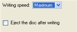 in case the user selects this kind of media). Writing parameters include writing speed (