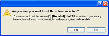- Select in the Main menu: Partition > Mark Partition Active/Inactive.