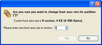3. Define parameters of the operation with the Change Boot Size dialog.