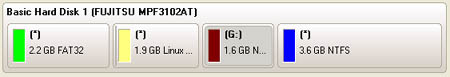 As the name infers, the Disk Map displays the layout of physical and logical disks. Physical disks are represented with rectangle bars that contain small-sized bars. These small-sized bars represent logical disks. Their color depends on the file system of the appropriate partition.