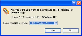 The program provides the ability to decrease version of existed NTFS partitions. This feature can be particularly useful when, for instance, dealing with different versions of the Windows NT family operating systems.