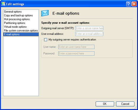 This section contains a set of options that will be taken into account during the Send log files and Send e-mail notification operations.