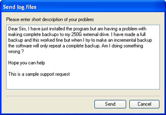 By clicking the Send button the built-in mail client will generate a template request with attached compressed log files and then send it to the 7Tools Support Team.
