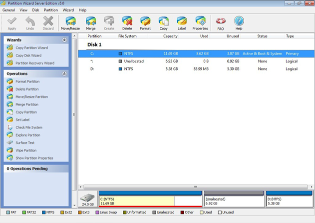 If you like to extend NTFS Windows system partition but do not like to reboot. Partition Software can help you no matter it is Windows Server Operating System such as Windows Server 2000/2003/2008 or Non-Server Operating System such as Windows 2000/XP/Vista/Windows 7. Your data will be protected during partition extending.