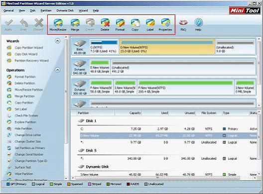 Move/Resize" function to release some space and extend partition. In addition, all theses operations can be realized easily without causing any effect on data security.