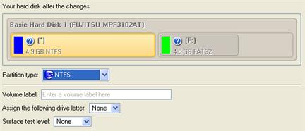 - Volume label. Enter a label for the selected partition in the textual field. The Volume label is an irrelevant parameter usually used for drive identification.