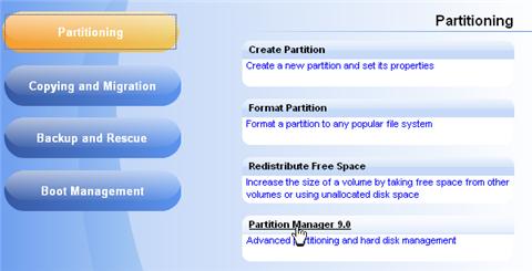 1. Launch Partition Manager 11 by clicking the Partitioning button and then selecting Partition Manager 11 in the Express Launcher;