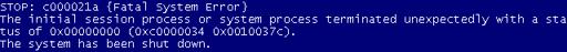 After all the operations are completed you will not be able to restart the system, what is quite normal. Nevertheless if you do try it, the following error will occur: