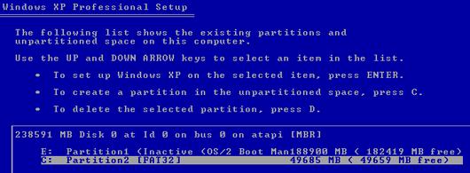 11. Install Windows XP on the newly created partition. We won't go into details as for its installation, as you can find all the necessary information in documentation that comes with the product. However to avoid any problems, we consider it necessary to draw your attention on the following issues: