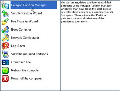 1. Insert Paragon Linux/DOS Recovery CD (the BIOS must be enabled to boot the system from the CD/DVD device).