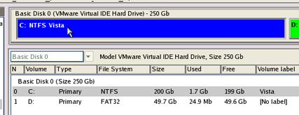8. As a result of the operation we have got a newly created FAT32 partition just enough in size to comfortably work with Windows XP;