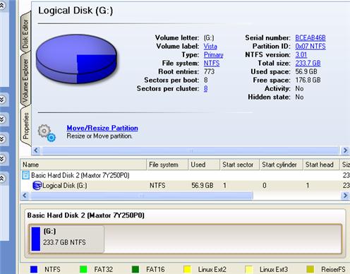 3. Release some free space (not less than 10 GB to install Windows XP) from the partition. To do that, please call the context menu for the selected partition (right click of the mouse button) and launch the Move/Resize dialog;
