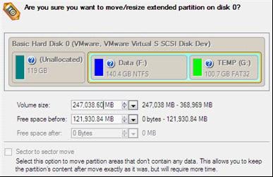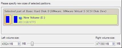 9. In the opened dialog shift the edge of the extended partition to the right.
