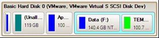 11. Now you need to move the second primary partition just the way we did it with the logical partition to make the block of free space adjoin the system partition.