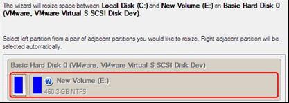 3. Choose a space donor partition and then call the context menu for it (right click of the mouse button) to launch the Move/Resize dialog.